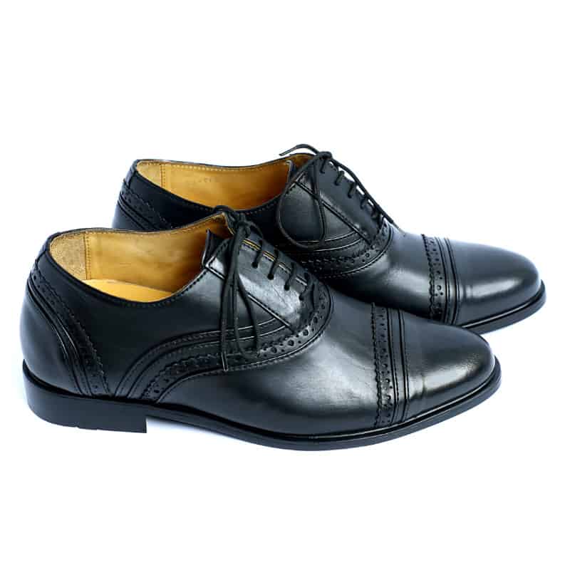 Enhance your style with the exquisite black leather Oxford brogue shoes that will elevate your height by 6.5 cm. Experience the epitome of luxury with our premium elevator shoes. Prepare to experience an unmatched level of comfort, accompanied by an awe-inspiring display of meticulous craftsmanship that is poured into every single pair. Our shoes are meticulously handcrafted using only the finest genuine cowhide leather, ensuring unparalleled quality and style. These versatile shoes are perfect for any occasion, be it a special event or everyday wear. The BLB17X shoe boasts top-notch leather construction that ensures unparalleled durability and supreme comfort.